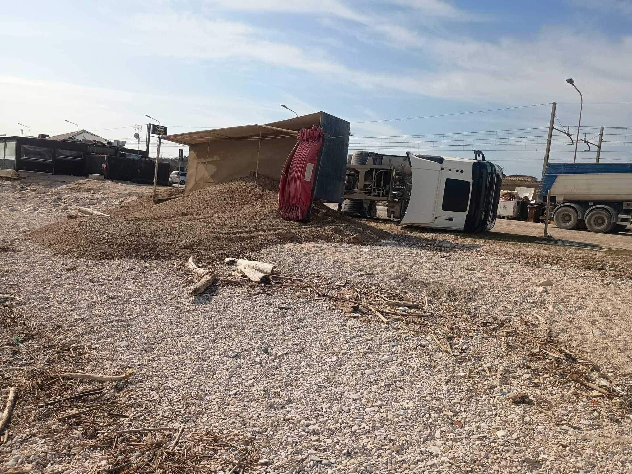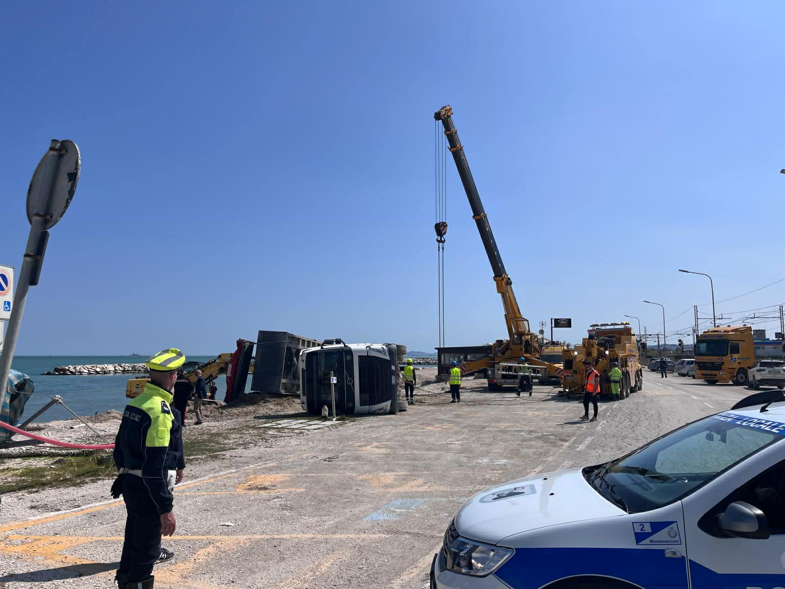 Infortunio sul lavoro stamattina a Marina di Montemarciano dove il conducente di un mezzo pesante è rimasto ferito a seguito del suo ribaltamento.
