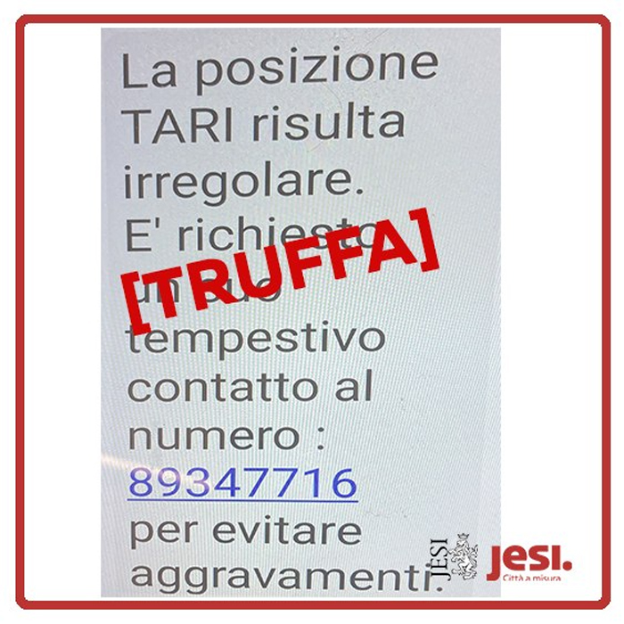 «Stanno arrivando segnalazioni di messaggi telefonici – simili a quello mostrato in foto – che parlano di posizioni Tari non regolari e invitano a contattare un numero di telefono. È una truffa. Il comune di Jesi non invia messaggi telefonici e non chiede di chiamare numeri per questioni relative ai tributi locali». Con un avviso diramato su tutti i canali social istituzionali il comune di Jesi mette in guardia i contribuenti da un sms che in questi giorni sta circolando su molti smartphone dei cittadini. Il pericolo sotteso a questo sms è quello di fornire involontariamente dati personali sensibili. L’invito del Comune rivolto proprio a tutti è quello di «non richiamare il numero indicato. L’Ufficio Tributi (Piazza Ghislieri) è a disposizione per qualunque informazione sulla posizione tributaria dei contribuenti (Tel. 0731538605). Condividi questo messaggio con parenti, vicini di casa e soprattutto con persone anziane per evitare raggiri».