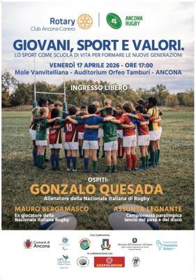 Venerdì la città di Ancona diventerà il centro di una profonda riflessione sul ruolo pedagogico della pratica sportiva con l’evento “Giovani, Sport e Valori”. L’appuntamento, in programma alle ore 17 all’Auditorium Tamburini della Mole Vanvitelliana, vedrà la partecipazione di tre figure iconiche dello sport mondiale: il Ct della Nazionale Italiana Rugby Gonzalo Quesada, la leggenda azzurra Mauro Bergamasco e la pluricampionessa paralimpica Assunta Legnante.