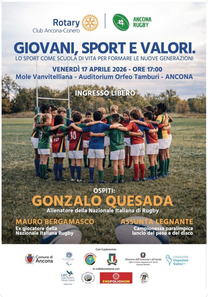 L’iniziativa nasce dalla collaborazione tra il Rotary Club Ancona-Conero e il Rugby Ancona, con il patrocinio del Comune e di una vasta rete istituzionale. Come sottolineato durante la conferenza stampa di presentazione, lo sport non è solo agonismo ma un potente strumento di formazione.