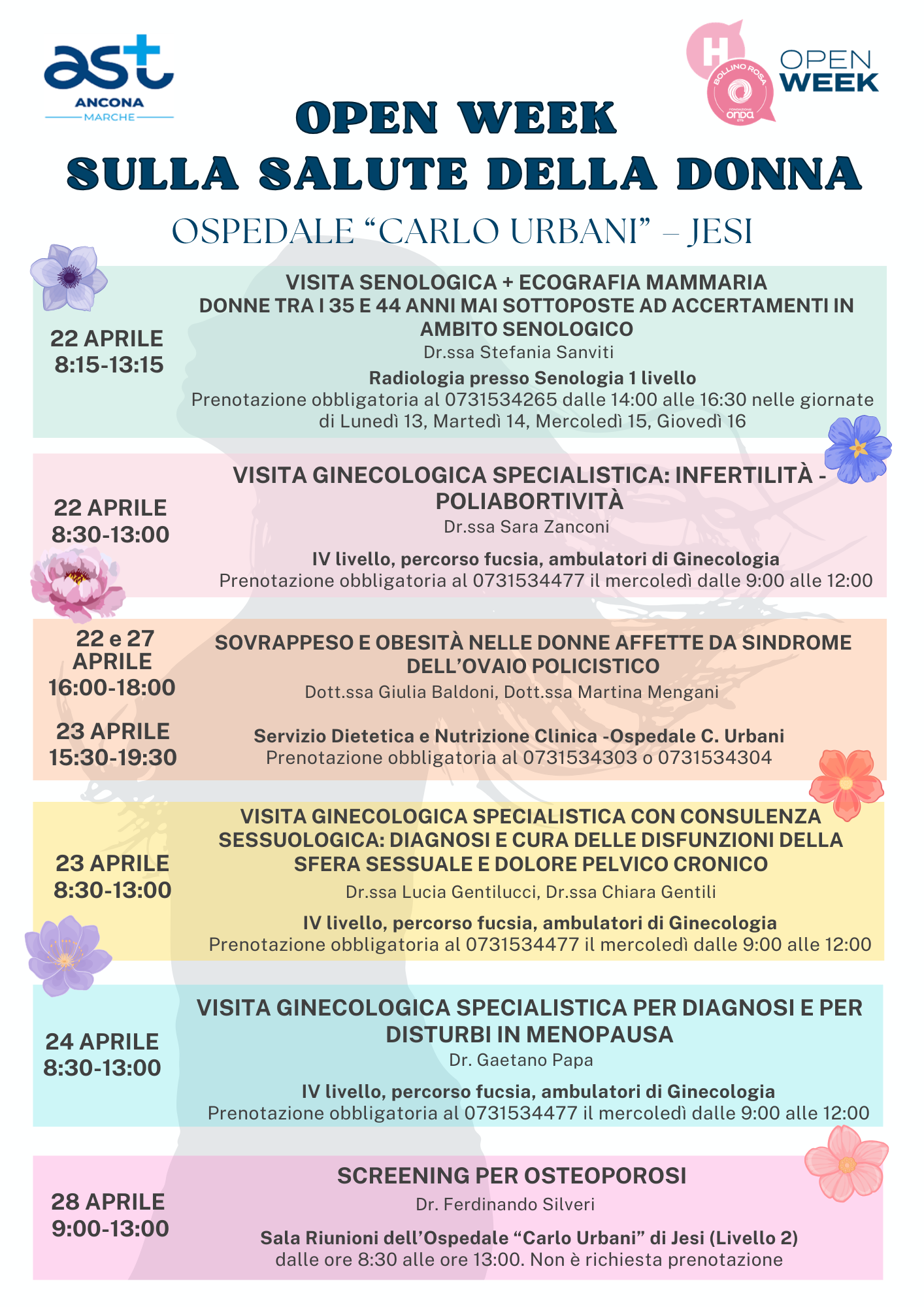 Tutte le informazioni circa le iniziative degli Ospedali Bollino Rosa della AST Ancona sono sul portale di Onda all’indirizzo: (H) Open Week sulla salute della Donna – dal 22 al 29 aprile 2026