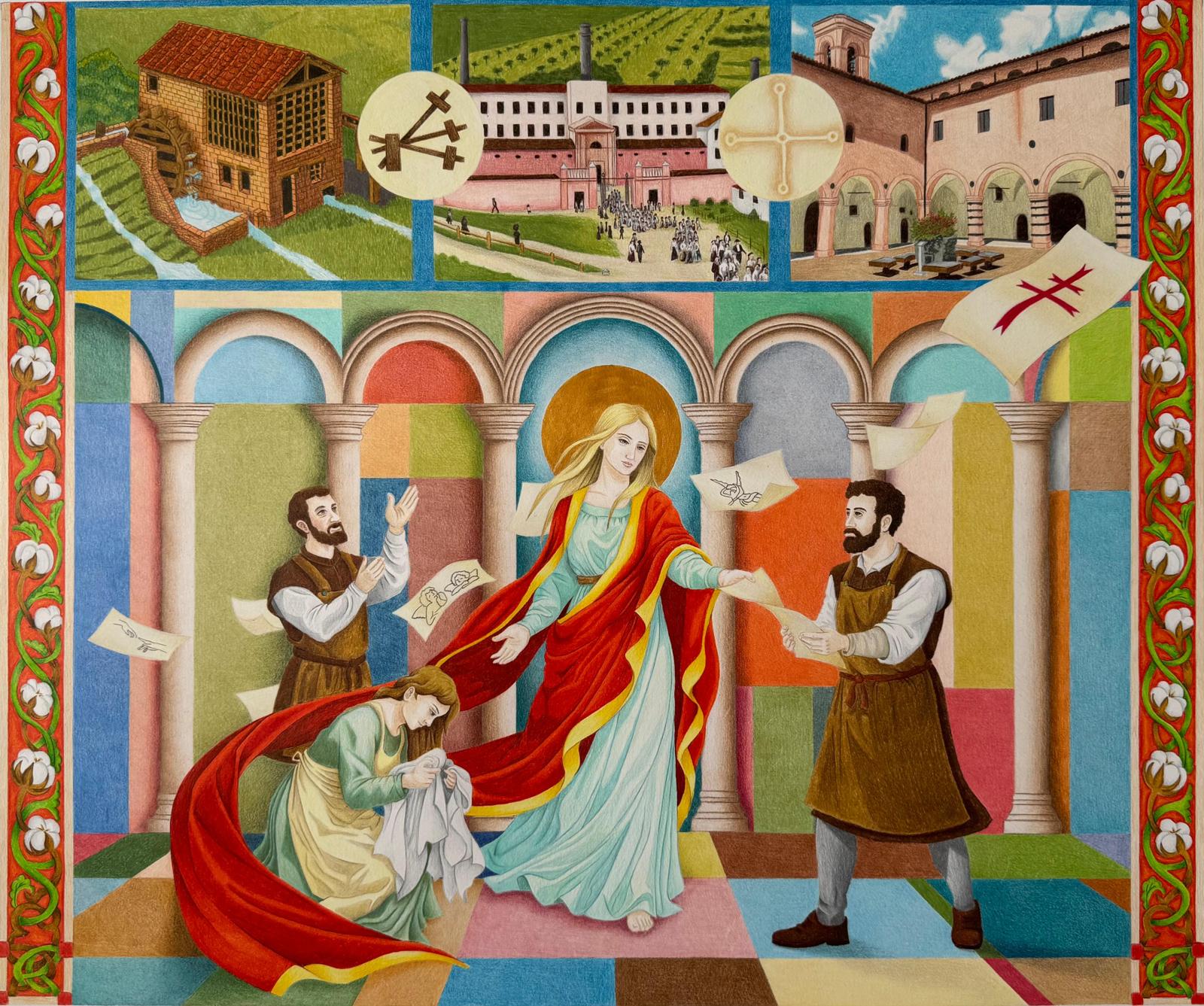 Grande emozione ha accompagnato la presentazione dei bozzetti, momento che da sempre segna simbolicamente l’avvio dell’ultima fase verso il Palio. Un passaggio atteso dagli artisti e dai portaioli, che dà forma concreta a mesi di lavoro e preannuncia l’intensità delle settimane a venire. Quattro le visioni artistiche che animeranno l’edizione 2026. Porta del Borgo – artista Francesca Balduccio, titolo “Storia di Carta, anima di Fabriano” è un’opera che racconta la carta come memoria viva della città, intrecciando storia, devozione e tradizione artigiana in un’unica narrazione visiva. Porta Cervara – artista anonimo “Saski”, è espressione della periferia fabrianese, titolo: “Carta tra passato e futuro”: un progetto che ripercorre l’origine e l’evoluzione della carta tra Oriente e Occidente. Porta del Piano – artista Claudia Carnevali, con “Personificazione della Carta” è una composizione simbolica e stratificata che celebra le materie prime e i processi produttivi, rileggendo il linguaggio medievale in chiave contemporanea. infine Porta Pisana – artista Gianmarco Angeletti, con “Il respiro della carta” è un racconto potente e immersivo che restituisce la sacralità del gesto del mastro cartaio e il valore universale della tradizione fabrianese Quattro interpretazioni diverse, unite da un unico filo conduttore: la carta come anima di Fabriano, capace di attraversare i secoli e parlare ancora oggi al mondo.