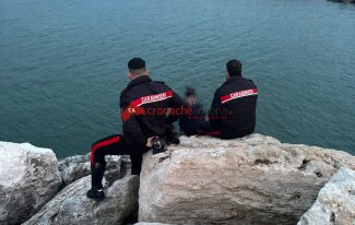 A quel punto i carabinieri intervengono fisicamente. Uno dei militari lo raggiunge e lo blocca mentre è già in mare, gli altri formano una catena umana sugli scogli resi scivolosi. Si tolgono anche parte dell’equipaggiamento, gli stivali, per non essere trascinati in acqua. Il timore è che, una volta riportato sulla roccia, possa tentare ancora.