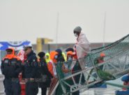 ANCONA – Fabio Giri della Caritas: «I migranti sono infreddoliti. Qualcuno è spaventato, spaesato». Le dichiarazioni dei protagonisti che hanno prestato i primi soccorsi in mare e di chi li ha accolti alla banchina 22 dello scalo dorico. Al porto lo striscione ‘Welcome’