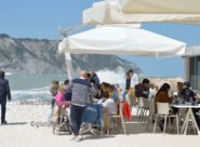 ANCONA – In molti oggi hanno scelto come meta la bellezza suggestiva della baia per passeggiare, fare jogging, cavalcare le onde sulla tavola da surf e sedersi a tavola con amici e familiari – FOTO