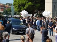 SENIGALLIA – Stamattina la chiesa di San Giuseppe Lavoratore non è riuscita a contenere tutti gli affetti del bimbo deceduto nel tragico incidente sulla strada della Bruciata e in tanti hanno seguito la funzione religiosa sul piazzale esterno e nei giardini. Sulla piccola bara bianca la maglia della Scuola Calcio Vigorina che il piccolo frequentava