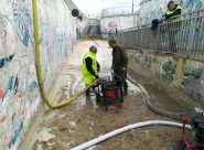 FALCONARA – I lavori in via Goito sono iniziati verso le 11. I volontari del gruppo comunale di protezione civile hanno dovuto attendere l’arrivo di una potente motopompa della protezione civile regionale