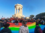 ANCONA – A guidare il corteo è stato un lungo drappo con i colori dell’arcobaleno, simbolo della pace
