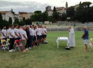 OSIMO – L’ assistente ecclesiastico generale dell’Università Cattolica prima di consacrarsi a Dio è stato un promettente calciatore della storia giallorossa in serie C. Stamattina, tra l’emozione generale, ha officiato la messa sull’erba dello stadio osimano per la squadra di mister Mobili alla presenza del sindaco