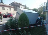 OSIMO – Spaventoso incidente stradale stamattina all’incrocio con via Molino Basso. L’utilitaria dove viaggiavano madre e figlio è stata sbalzata dopo l’urto contro il muro di una casa dove sono caduti i mattoni. Il bilancio è di tre feriti, trasportati negli ospedali di Osimo ed Ancona