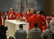 CELEBRAZIONE – Liturgia delle grandi occasioni per la festa del patrono della città e di tutta l’arcidiocesi, sei i vescovi che hanno concelebrato la Santa messa nella cattedrale per i 1600 anni dall’arrivo del corpo di San Ciriaco sulle sponde doriche. «Uno sposalizio di fedeltà», così ha definito il legame tra il Santo e la città il cardinale Edoardo Menichelli, arcivescovo emerito, nella sua omelia durante la quale ha ricordato gli anni del suo ministero episcopale con emozione e richiamato ad un’etica ispirata agli insegnamenti di San Ciriaco contro l’anarchia morale «di questo tempo liquido»