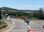 CAMERANO – L’incidente sulla Provinciale. L’uomo ha compiuto un volo di circa 5 metri. Sul posto la Croce Gialla, automedica di Osimo e polizia locale