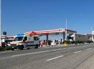 CAMERANO – L’incidente all’altezza della stazione di servizio Frontalini. Il motociclista, rimasto sempre cosciente, è stato trasportato con un codice rosso