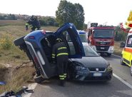 CASTELFIDARDO – Sul posto vigili del fuoco, 118 e carabinieri dopo che una delle due vetture si è parzialmente ribaltata sulla Statale 16