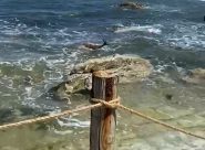 ANCONA – Sorpresa per quanti si trovavano sulla spiaggia, nel notare l’animale scendere dal sentiero e poi risalire dopo un breve bagno