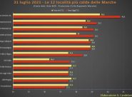 IL DATO – La Protezione civile ha stilato la classifica delle 12 località di oggi che hanno registrato le temperature più torride in Regione. Al primo posto c’è San Severino con 40°, al terzo Moie di Maiolati Spontini con 39,1°