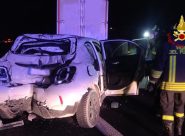 L’INCIDENTE nella notte all’altezza dello svincolo di Civitanova, direzione sud. A Muccia un furgone ha sbandato su una rotatoria in costruzione ed è finito in un campo