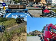 L’INCIDENTE all’uscita di Civitanova. Il conducente del tir, un uomo di Filottrano, è stato soccorso in eliambulanza e trasferito a Torrette. E’ cosciente. Dopo aver perso il carico nella scarpata, ha continuato a guidare solo con la motrice per poi finire contro la recinzione di un’abitazione in via Fontanelle. FOTO
