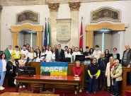 MEMORIA – Ieri il sindaco Lorenzo Fiordelmondo e l’assessore Luca Brecciaroli hanno accolto in Comune alunni e insegnanti dell’istituto scolastico Gesamschule, ospite del Liceo Classico Vittorio Emanuele II per commemorare l’eccidio nel Brandeburgo di 127 internati militari italiani, tre dei quali della città di Federico II, fucilati il 23 aprile 1945