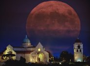 Il Duomo di San Ciriaco e la luna, fotografata utilizzando un telescopio puntato a Collemarino