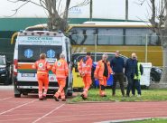 CIVITANOVA – Durante il match contro il Castelfidardo al Polisportivo l’uomo è stato colpito da una scheggia al labbro: il botto era stato lanciato dal settore ospiti a fine primo tempo a pochi metri dagli operatori dell’associazione