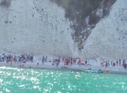 NUMANA – La donna, una 65enne tedesca, è caduta a 100 metri dalla spiaggia. Sul posto l’idroambulanza della Cri, 118 e il Soccorso Alpino coordinati dalla Capitaneria di Porto