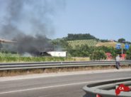 CHIARAVALLE – Il mezzo trasportava un carico di acqua minerale. Sul posto i Vigili del fuoco partiti con due autobotti da Ancona e la Polizia Stradale
