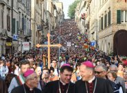 PELLEGRINAGGIO – Sono arrivati verso le 6,40 dopo essere partiti ieri sera dallo stadio Helvia Recina di Macerata. Sono stati 80mila secondo gli organizzatori: anziani, giovani, bambini provenienti da ogni parte d’Italia. Il benvenuto dell’arcivescovo Fabio Dal Cin