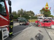POLVERIGI – L’incidente è avvenuto stamattina alle 8.45 in via San Giovanni all’altezza dell’intersezione con via del Vivaio. Mamma 37enne e figlio di Agugliano sono rimasti incastrati in una Fiat 500 e sono stati trasportati in codice rosso all’ospedale di Torrette insieme all’altra automobilista di 24 anni di Osimo