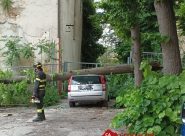 ANCONA – Tragedia sfiorata in via Fanti. Il pesante tronco ha sfondato il tettuccio di una vettura. Sul posto vigili del fuoco e polizia locale