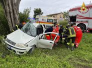 CASTELFIDARDO – L’incidente è avvenuto intorno alle 11 in via Che Guevara. Il conducente, un 19enne fidardense, e due ragazze 17enni di Osimo e Recanati che viaggiavano a bordo di una Fiat Punto dopo il violento urto sono stati liberati dalle lamiere dai vigili del fuoco e trasferiti all’ospedale di Torrette ad Ancona con l’elisoccorso e sulle ambulanze