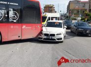 ANCONA – L’incidente è avvenuto nella rotatoria di via Conca. Sul posto polizia locale e Croce Gialla
