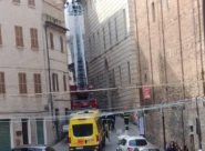 OSIMO – Tre ore di lavoro per i vigili del fuoco e per la polizia locale che oggi ha chiuso al transito via Matteotti. Con l’autoscala sono stati rimossi gli elementi architettonici pericolanti anche sul lato di palazzo Sinibaldi Folenghi che si affaccia in via Santa Lucia, la salita che conduce alla primaria ‘Bruno da Osimo’