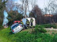 ANCONA – Auto impantanata tra Montacuto e via del Castellano ad Ancona. Intervengono polizia locale, 118, Croce rossa e vigili del fuoco: coppia illesa