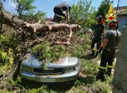 VIGILI DEL FUOCO al lavoro anche oggi per tagliare rami e alberi pericolanti. Nell’Anconetano rimangono da completare 70 interventi in seguito al nubifragio di martedì. Operazioni in corso anche nel Maceratese