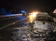 CASTELFIDARDO – Tanta paura ma nessun danno per il conducente e il passeggero che questa sera sono riusciti a uscire dall’abitacolo prima che le fiamme avvolgessero la Golf. Sul posto i vigili del fuoco, la Polizia locale che ha istituito il senso unico alternato di marcia e gli operai Anas per la bonifica dell’asfalto