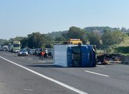 CIVITANOVA – E’ successo pochi chilometri dopo lo svincolo, alle 16,20 circa. Il mezzo si è rovesciato sulla corsia di centro. Nulla di grave per il conducente