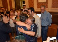 ELEZIONI – A mezzanotte, con il risultato ormai acquisito, il sindaco Mancinelli rientra a Palazzo del Popolo per i prossimi cinque anni. “Ha vinto la politica utile”. Delusione per Tombolini. “Continueremo nella nostra opposizione ferma per garantire la legalità dell’amministrazione”