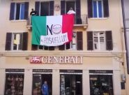 OSIMO – Una grosso tricolore fatto sventolare sul balcone della sede del movimento pentastellato, visibile da piazza Boccolino, e l’Inno di Mameli a tutto volume per esprimere dissenso contro il Rosatellum stamattina durante la manifestazione in centro storico, concomitante all’arrivo del segretario Pd a Osimo Stazione