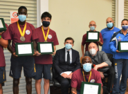 OMAGGIO – I tesserati della società civitanovese sono stati ricevuti da Dino Latini, presidente del Consiglio marchigiano, che ha donato loro una targa per i risultati conseguiti recentemente. Presente all’incontro anche Angelica Ghergo, vincitrice juniores nei 400 metri ostacoli ai campionati italiani