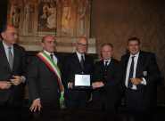 OSIMO – La cerimonia stamattina a palazzo comunale con il presidente nazionale della Fip che ha consegnato una targa al docente-icona della pallacanestro osimana