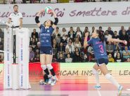 PALLAVOLO FEMMINILE A1 – Nulla possono le ragazze di Filottrano contro le campionesse d’Italia guidate dalle azzurre Danesi, De Gennaro e Sylla, omaggiate prima della gara con un mazzo di fiori per il risultato raggiunto al Mondiale